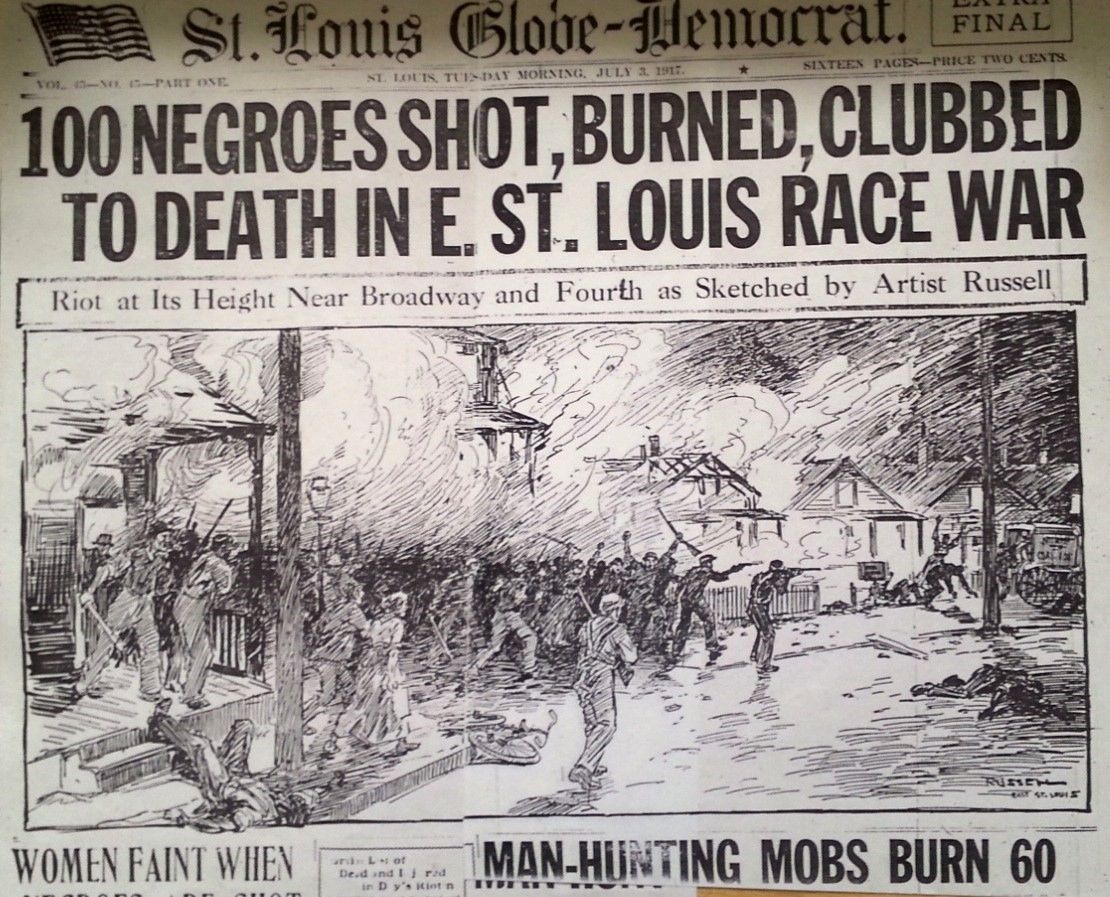 By the time some sense of calm returned to the streets of East S.Louis over six thousand souls had been displaced. Thousands had been attacked. Over two hundred were murdered. Over three hundred structures owned by African-American were destroyed.